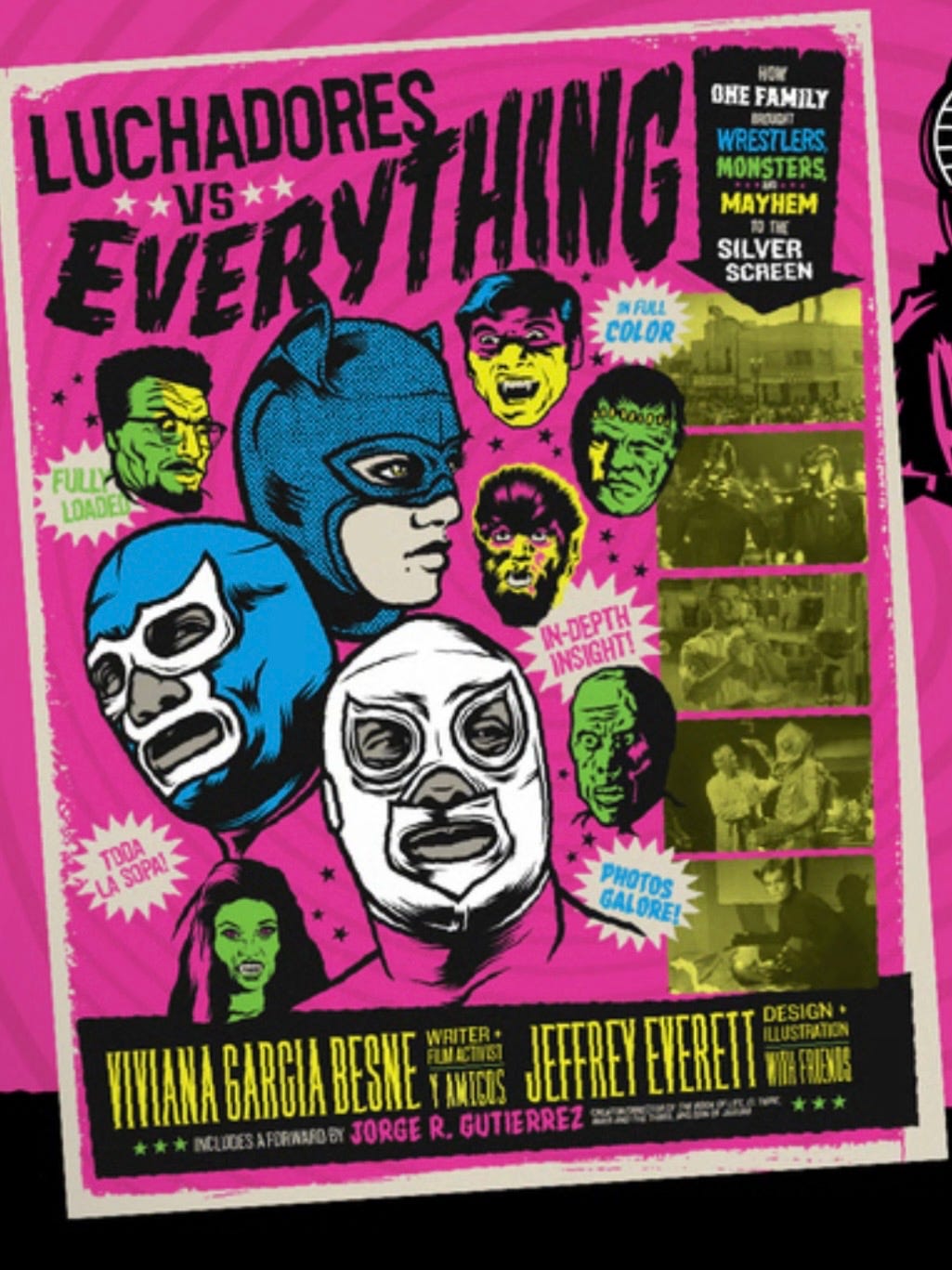 There is an untapped realm of lucha libre movies from decades ago where masked heroes waged war against Dracula and his brides, Frankenstein and his daughters, werewolves and monsters. The films are a fascinating time capsule from wrestling history, and everything–yes, everything–about those movies is detailed in the new book Luchadores vs. Everything.