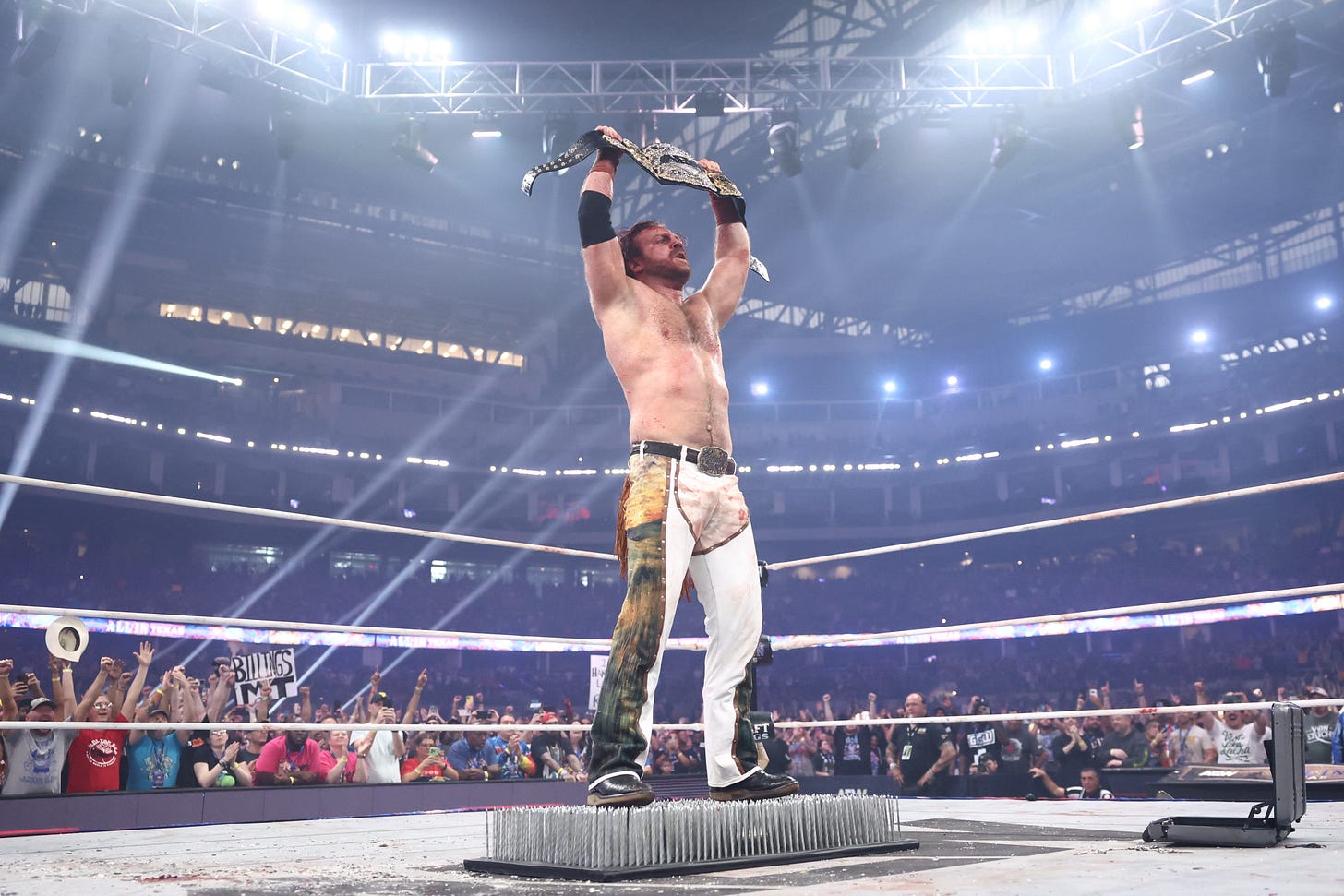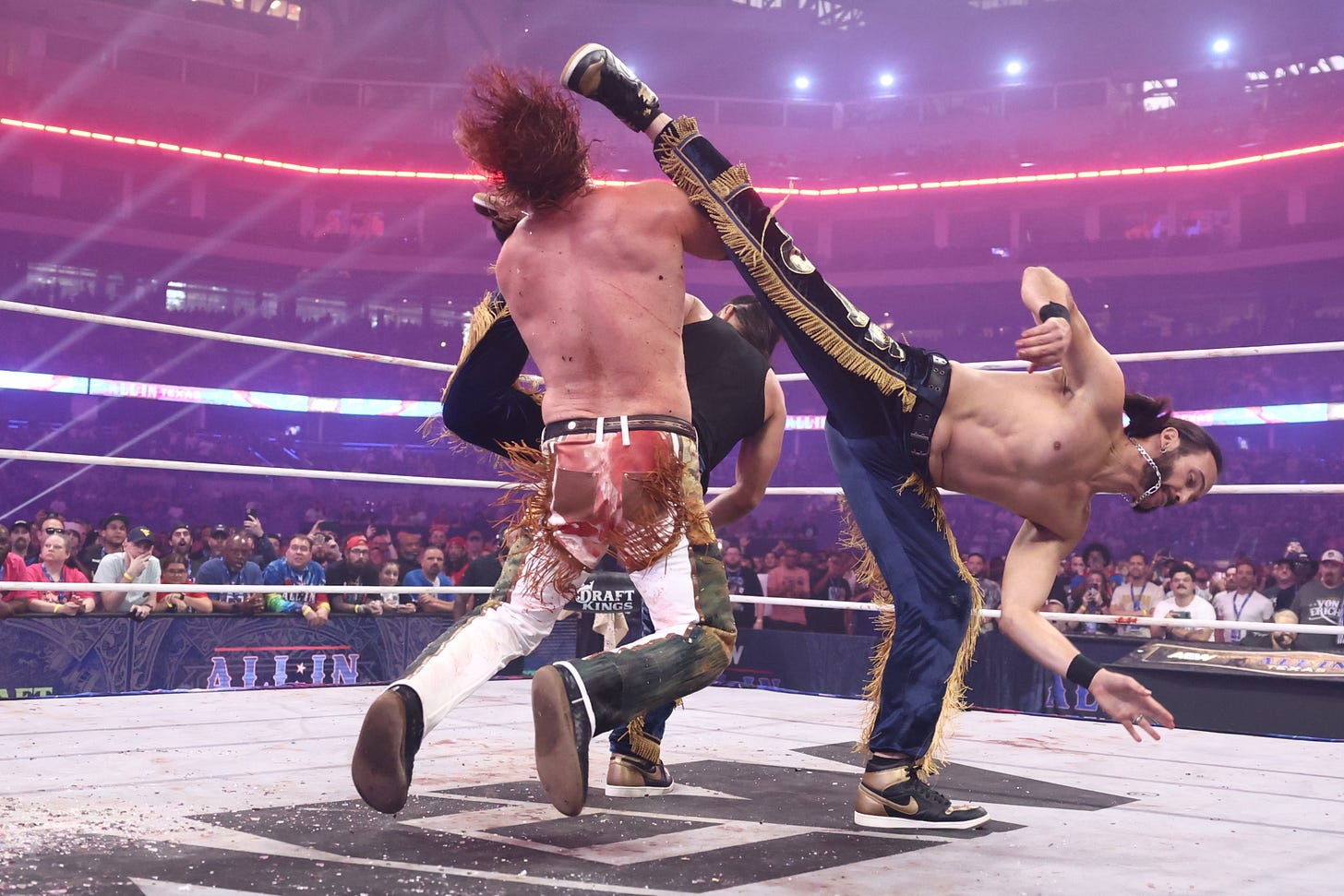 Through a mixture of blood, toil, and tears, Hangman defeated Jon Moxley in an epic All In main event at Globe Life Field in Arlington, Texas. he struggled with Moxley, who refused to relinquish his spot atop the company. But after more than 35 minutes, Hangman finally vanquished his highly acclaimed opponent.